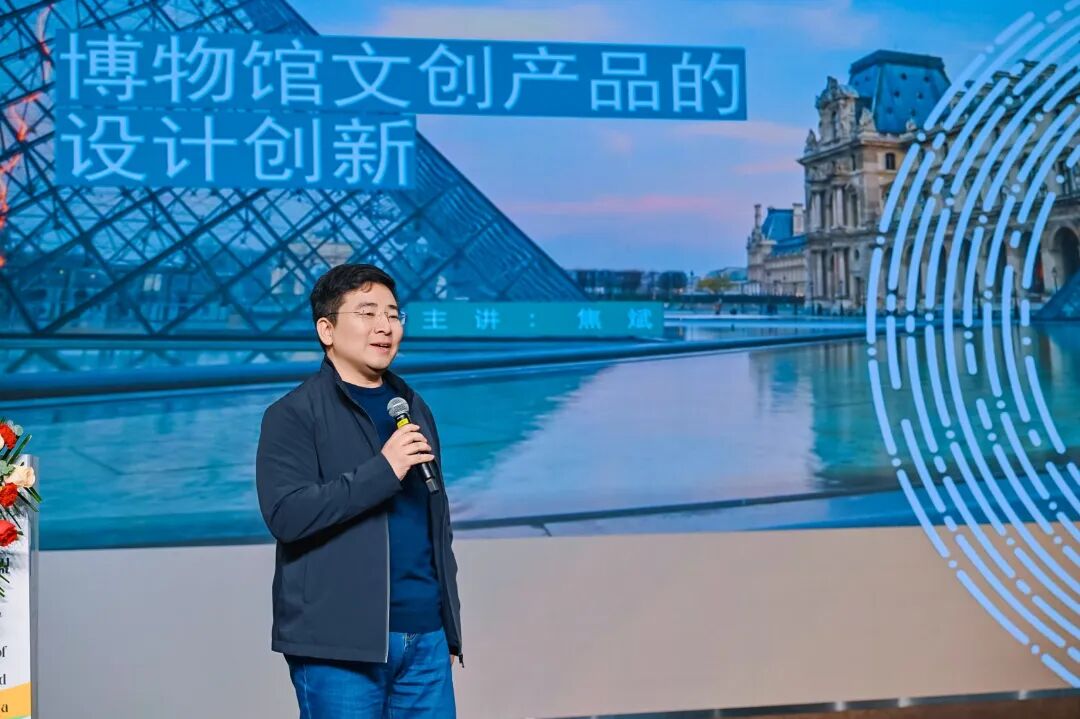 开幕式后,焦斌教授在报告厅二楼作了题为《博物馆文创产品创新设计》的专题讲座。他结合故宫博物院文创开发实践,深入解析博物馆IP如何通过设计转化、科技赋能与市场对接实现“活化传承”,为师生呈现一场文化资源创新转化的思想盛宴。