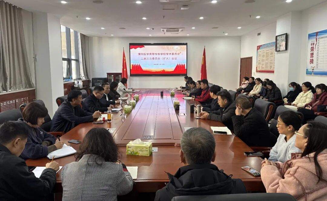 2025年11月18日,濮阳医学高等专科学校在易明楼7楼会议室召开第三届学术委员会成立会议。会议完成了委员调整、章程修订、换届选举等重要议程,正式成立第三届学术委员会。在校领导班子成员出席。全体学术委员会委员参加。会议由副校长李君笙主持。
