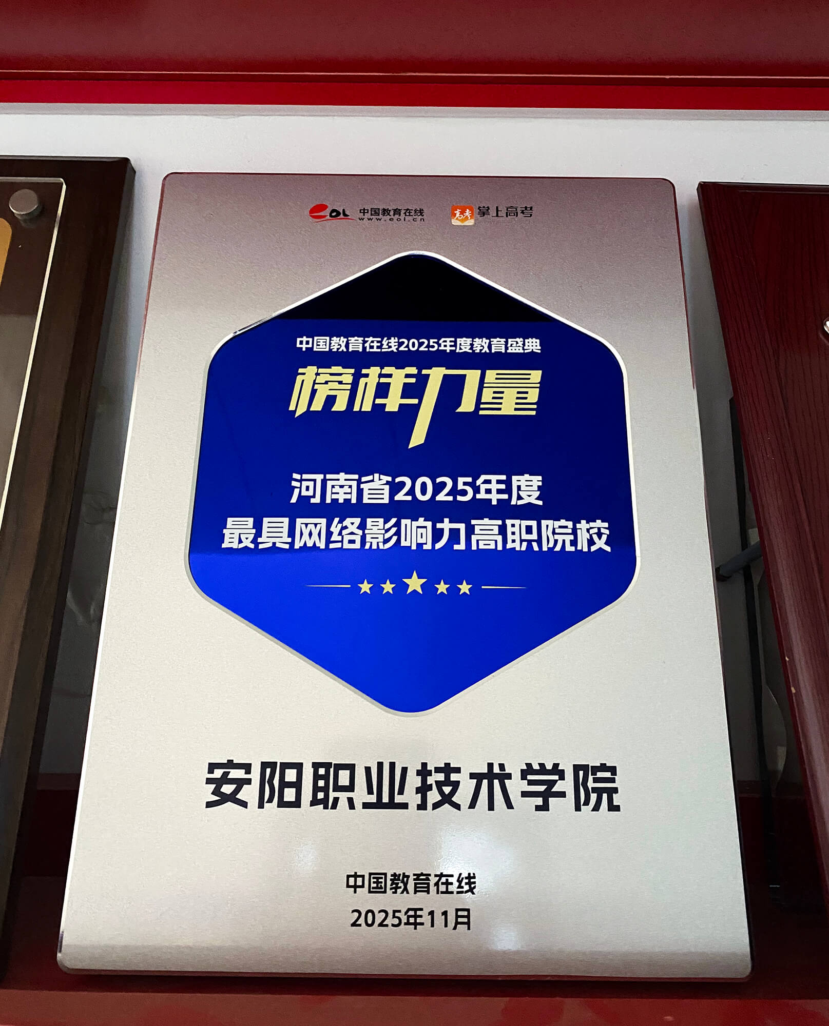 近日,中国教育在线“榜样力量·2025年度教育盛典”优秀案例名单公布。安阳职业技术学院凭借极具创新性与前瞻性的招生宣传策略,以及扎实过硬的宣传执行实力,从众多高校中突围,获评“河南省2025年度最具网络影响力高职院校”。