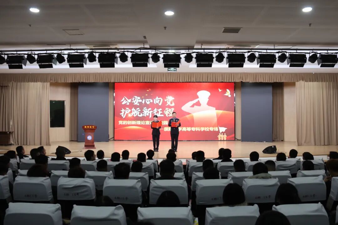 为深入学习贯彻党的二十届四中全会精神,推动党的创新理论在青年学生中落地生根,12月10日,“公安心向党·护航新征程”党的创新理论宣讲进校园活动在学校易明楼报告厅举行。宣讲会邀请8名来自不同警种的青年民警,他们结合学习和工作实际,用“青言青语”讲述身边故事,让党的创新理论可感、可知、可践行。