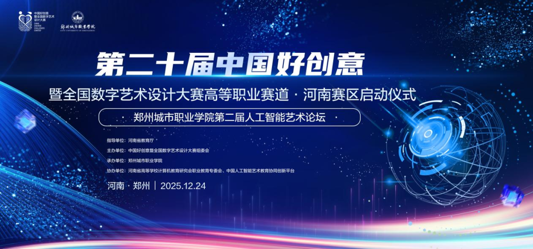数字浪潮奔涌向前,智能时代已然来临。一场聚焦数字艺术与人工智能(AI)深度融合的行业盛会即将拉开帷幕。由中国好创意暨全国数字艺术设计大赛组委会主办、郑州城市职业学院承办的第二十届中国好创意暨全国数字艺术设计大赛高等职业赛道・河南赛区启动仪式,将于2025年12月24日在郑州城市职业学院举行。作为本次活动的核心亮点,郑州城市职业学院第二届人工智能艺术论坛也将同步启幕,为中原地区数字创意产业注入强劲创新动能。