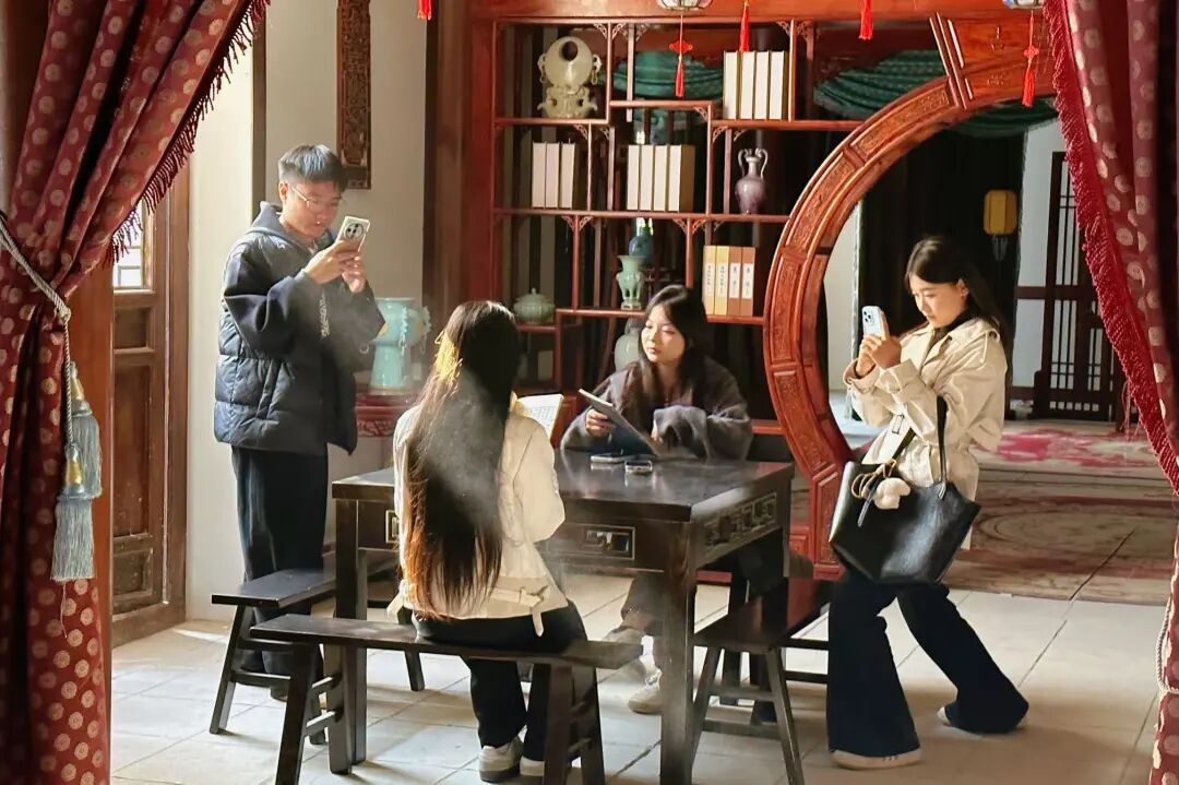 在基地专业人员的全程引导下,师生们逐一探访了古朴的城楼、鲜活的街市等各类实景拍摄场地。从场景搭建的材质甄选、空间规划,到道具陈设的巧思布局,同学们近距离拆解影视美术制景的每一个核心环节,在实地观察与深度交流中,搭建起对影视工业美术制景环节的系统认知框架。