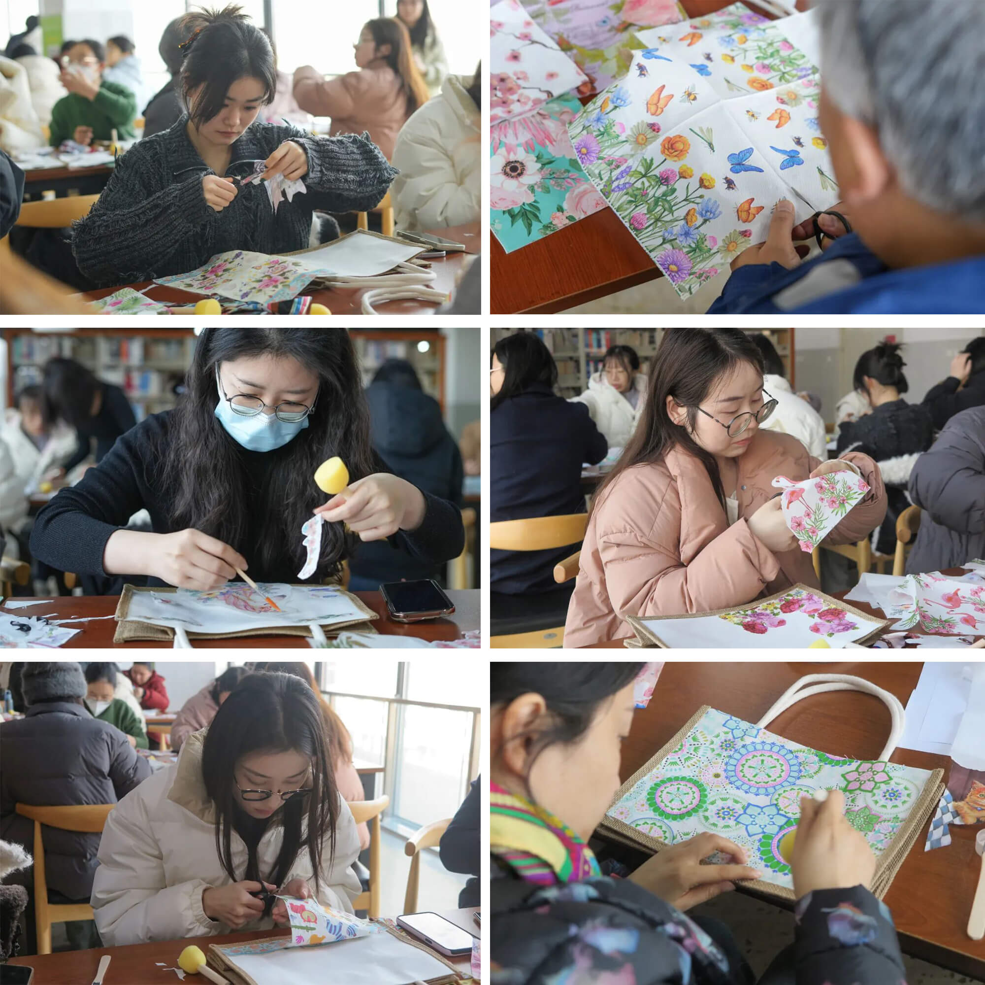 蝶谷巴特创作现场,薛俊丹老师按步骤拆解教学,教职工分组协作、大胆创意,在裁剪、拼贴、装饰的过程中感受传统工艺的精妙;书法临帖体验区,书法协会老师细致讲解冬至主题书法创作要点,指导书法爱好者们握笔、运腕、临帖,笔墨飘香间,大家沉浸式感受翰墨文化的博大精深。活动现场,非遗工坊和书画社的老师巡回指导,及时协助解决创作过程中的难点问题,欢声笑语与匠心巧思交织,氛围热烈而温馨。