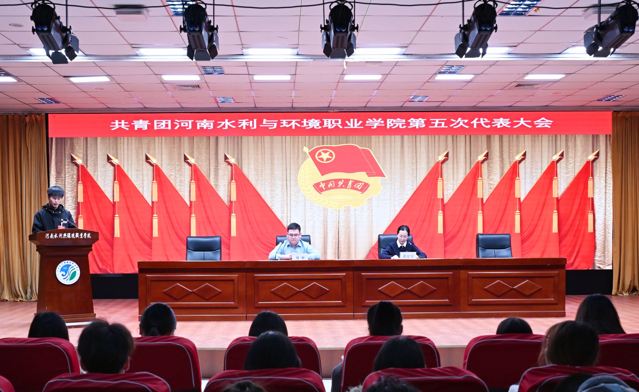 刘彬代表共青团河南水利与环境职业学院第四届委员会作工作报告。