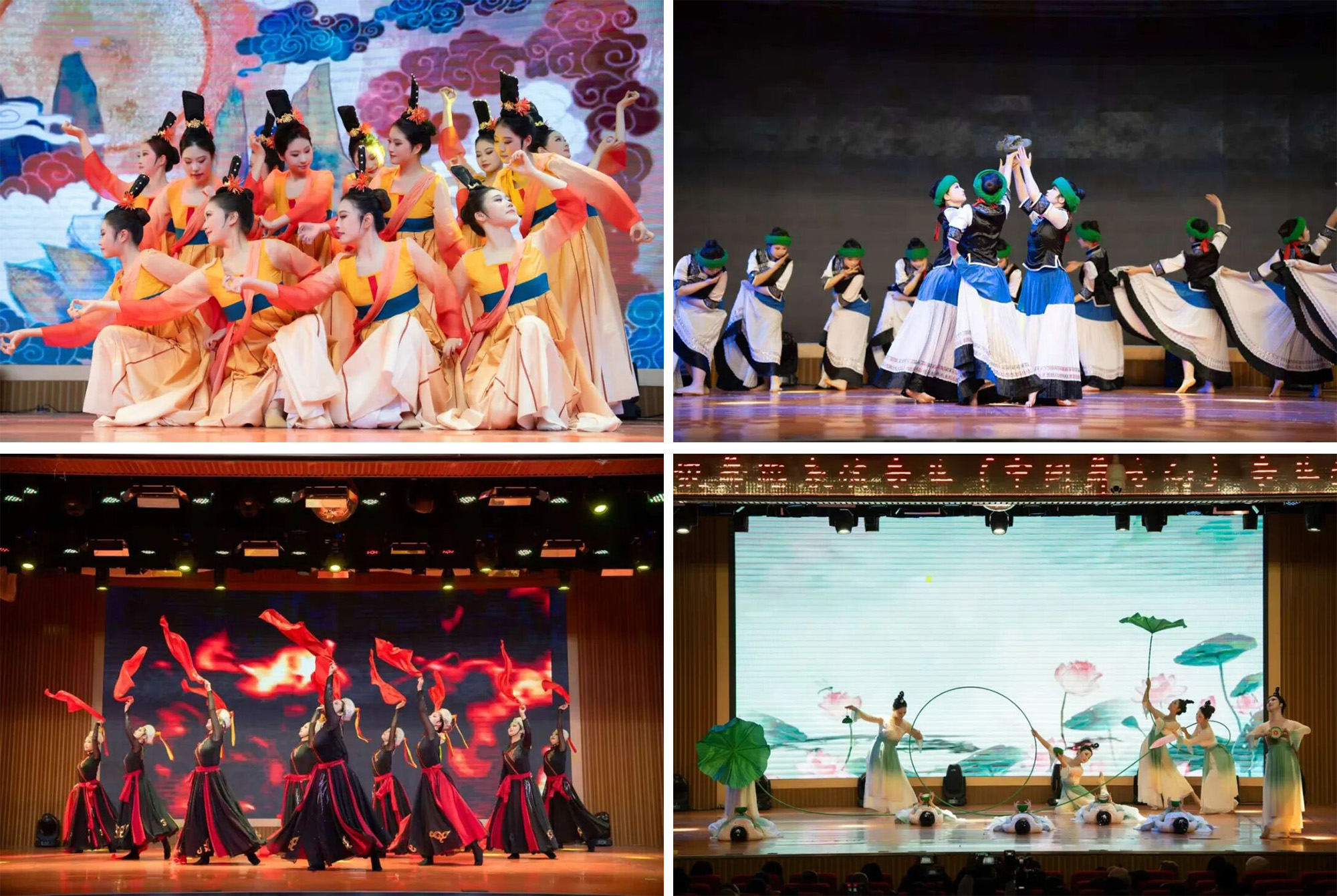 整场演出以“大河弦歌”为主题,分为“潮流·初绽锋芒”“奔涌·破茧成龙”“长吟·此间少年”三个篇章,层层递进,脉络清晰。学生们通过精彩的演绎,展现了从技术积累到情感升华、从模仿学习到个性表达的艺术成长历程。舞姿或婉约灵动,或豪迈奔放,或深情悲壮,极具表现力与叙事张力,深深打动了在场每一位观众。