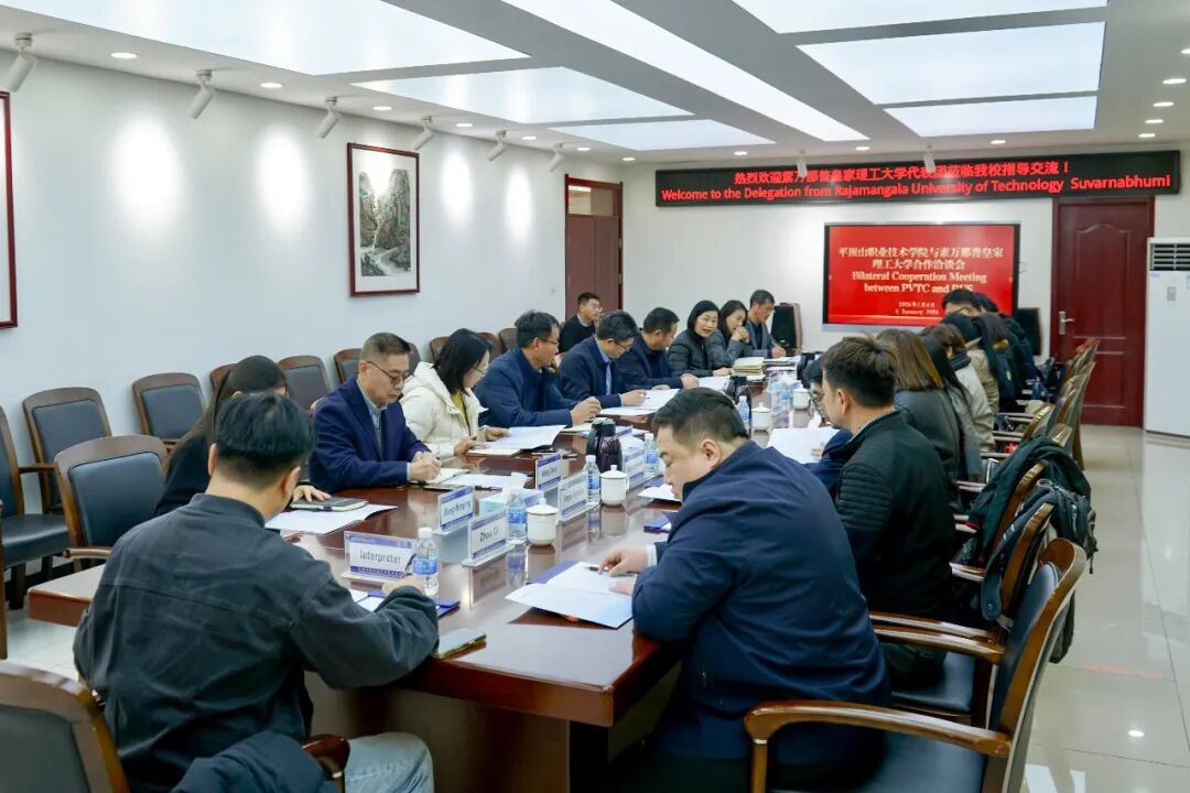 1月6日,平顶山职业技术学院与泰国素万那普皇家理工大学合作洽谈会在学校行政楼举行。