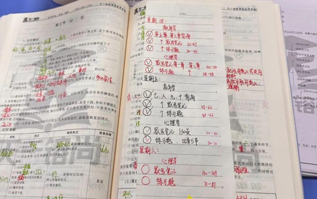 本科毕业后,怀揣着对教育事业的热爱,王子涵将目标锁定在特岗教师考试。然而,面对竞争日益激烈的考情和500多页的厚重教材,她坦言起初“焦虑到失眠”。但这份迷茫并未持续太久,她很快调整状态,用科学的方法和极致的坚持,开启了高强度的备考之旅。