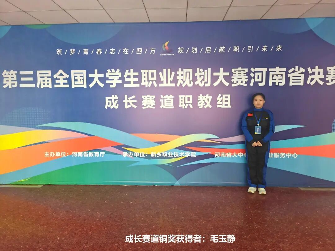 1月25日至26日,第三届全国大学生职业规划大赛河南省决赛职教组在新乡举行,河南林业职业学院信息工程学院殷凯获成长赛道金奖,旅游与食品学院陈曦获成长赛道银奖,航空工程学院毛玉静获成长赛道铜奖,信息工程学院赵育冉获就业赛道铜奖,王杰、王鑫、刘冰、邓建锋、刘军团队获课程教学赛道银奖,首次实现该类赛事省赛金奖突破!