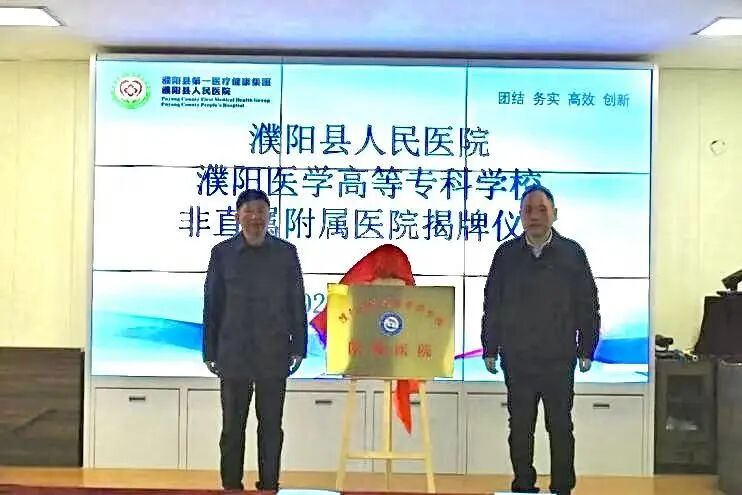 2026年2月3日,濮阳医学高等专科学校先后与濮阳县人民医院、濮阳县中医医院举行非直属附属医院揭牌仪式。副校长孟晓炜带队,相关部门负责人等参加活动。濮阳县人民政府副县长王相卿,县卫健委党组书记、主任甘文峰分别出席两家医院仪式。