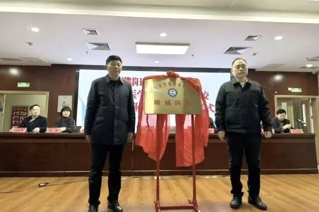 在濮阳县中医医院新院区,孟晓炜与医院党支部书记马绍锋签署合作意向书,并与王相卿副县长共同为“濮阳医学高等专科学校非直属附属医院”揭牌。