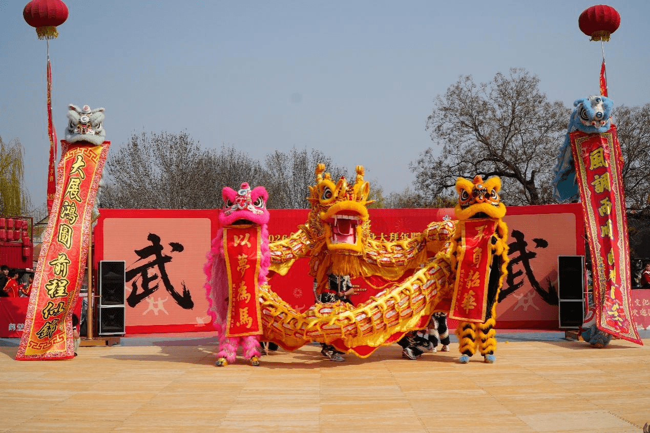 春光初染,百花吐芳。3月21日上午,2026年河南省全民健身大拜年暨第二十届中原大舞台武术展演鹤壁分会场第二站活动,在浚县古城举行。鹤壁能源化工职业学院武术社与龙狮战鼓队联袂登场,在青砖黛瓦的古城之外,以刚劲有力的武术与灵动鲜活的龙狮表演,生动演绎出中华传统体育文化的蓬勃生命力。