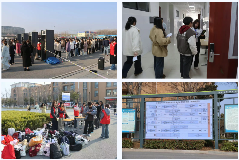 考试期间,学校考试工作领导小组对考务组织、安全保卫、后勤保障、应急处置、纪律监督等进行现场监督。逐一巡查考务办、标准化考场、视频监控室、试卷保密室等关键区域,实时把控考试动态、协调解决现场问题。各部门通力协作,安保人员全程值守维稳,后勤团队全力保障基础供应。各学院专门安排志愿者设置公共服务站点,为考生提供个人物品集中存放、路线指引、应急咨询等暖心服务,免去考生物品携带后顾之忧,让大家轻装上阵、从容应考。