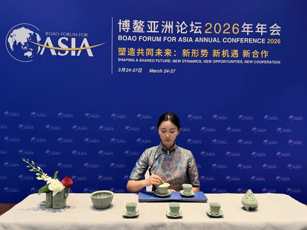 春风拂过博鳌湾,文脉悠远传四海。继2025年以宋式点茶与中原文化惊艳博鳌亚洲论坛年会后,平顶山职业技术学院文化旅游学院再度受邀,选派4名茶艺师与4名讲解员组成志愿服务团队,奔赴2026年年会现场。团队以精湛技艺讲述中国故事,以专业服务展现职教担当,更携平顶山特色非遗文创与优质产业产品亮相,让中原文化与地方产业之美在博鳌绽放光彩。