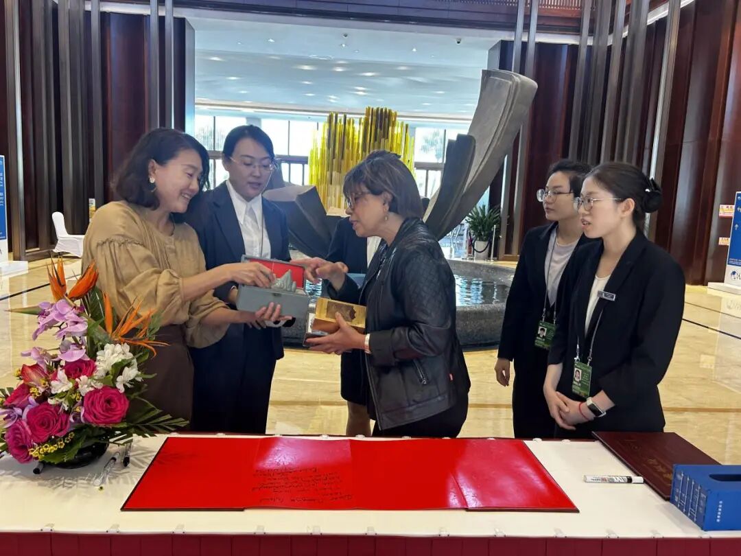 团队还将精心筹备的灵珑山茶叶、非遗瓷具等特色伴手礼赠予巴基斯坦参议员、吉尔吉斯斯坦前总理等多位重要外宾。以茶为媒、以器传情,每一次注水击拂,都是文化的传承;每一场现代茶艺演绎,都是青春的接力;每一回细致讲解,都是形象的展示;每一件非遗文创,都是地方文化走向世界的窗口;每一曲琴筝和鸣,都是东方美学的生动回响。