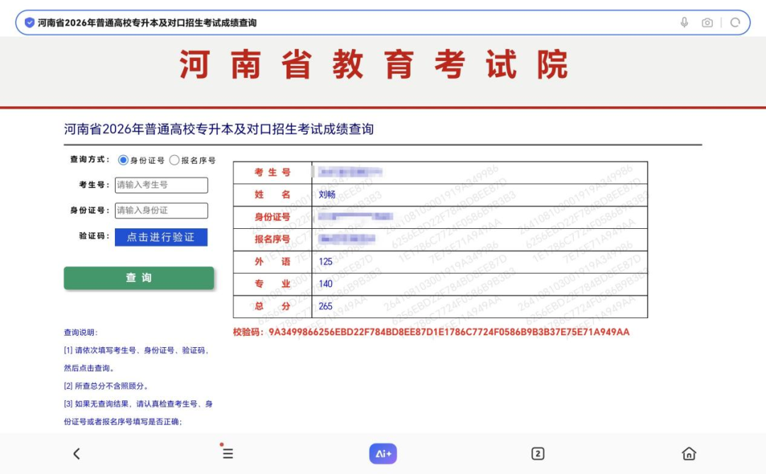 近日,2026年河南省普通高校专升本考试成绩正式公布。濮阳医学高等专科学校中医学院2023级中医学专业1班刘畅同学凭借不懈努力与出色发挥,以265分的优异成绩,荣获河南省专升本中医学专业总分第一名!