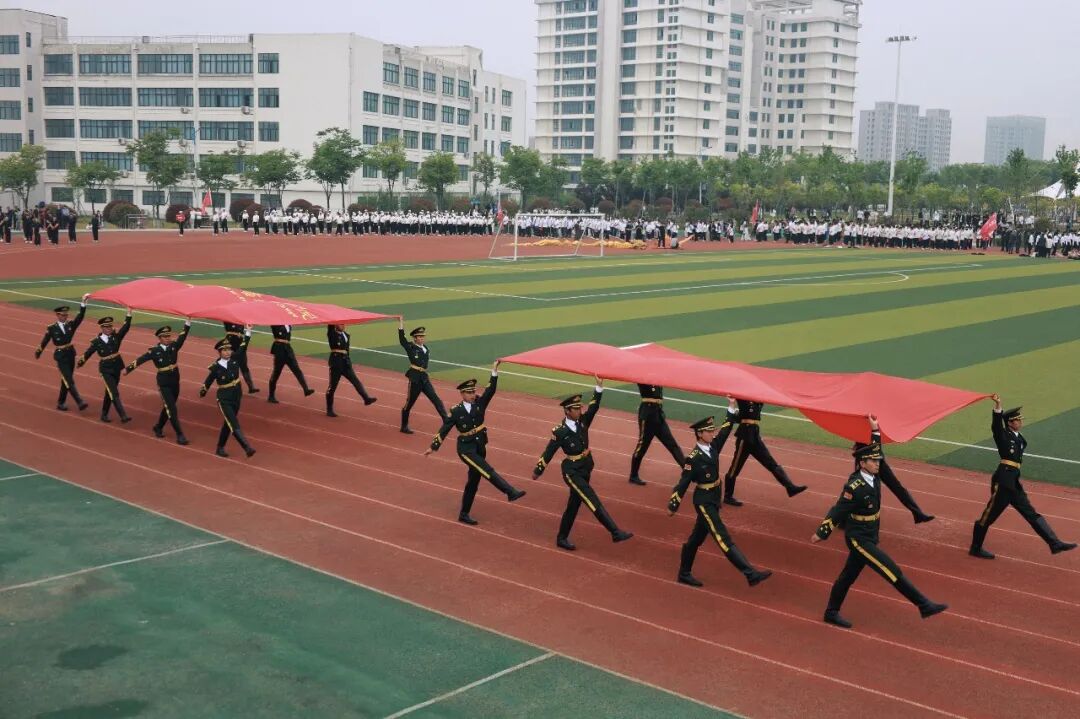 入场完毕后,现场举行了庄严的升旗仪式。全场师生齐唱国歌,向国旗行注目礼。