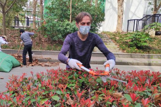 来自比利时的武汉生物工程学院外籍教师Jerry Van Oudenhove,自疫情发生以来,婉拒归国建议,坚持留汉共战“疫”,赢得了无数掌声。当前,武汉战“疫”进入决战决胜阶段,连日来,为筑牢环境卫生治理防疫线,保障在校教职工的健康,该校组织在校党员干部和志愿者,将科学疫情防控与人居环境治理有机结合起来,开展系列公益劳动,清扫教职工小区内的道路和花坛落叶,修剪院内树枝,对果园果树松土除草,消除卫生死角,为在校教职工营造良好生活环境。