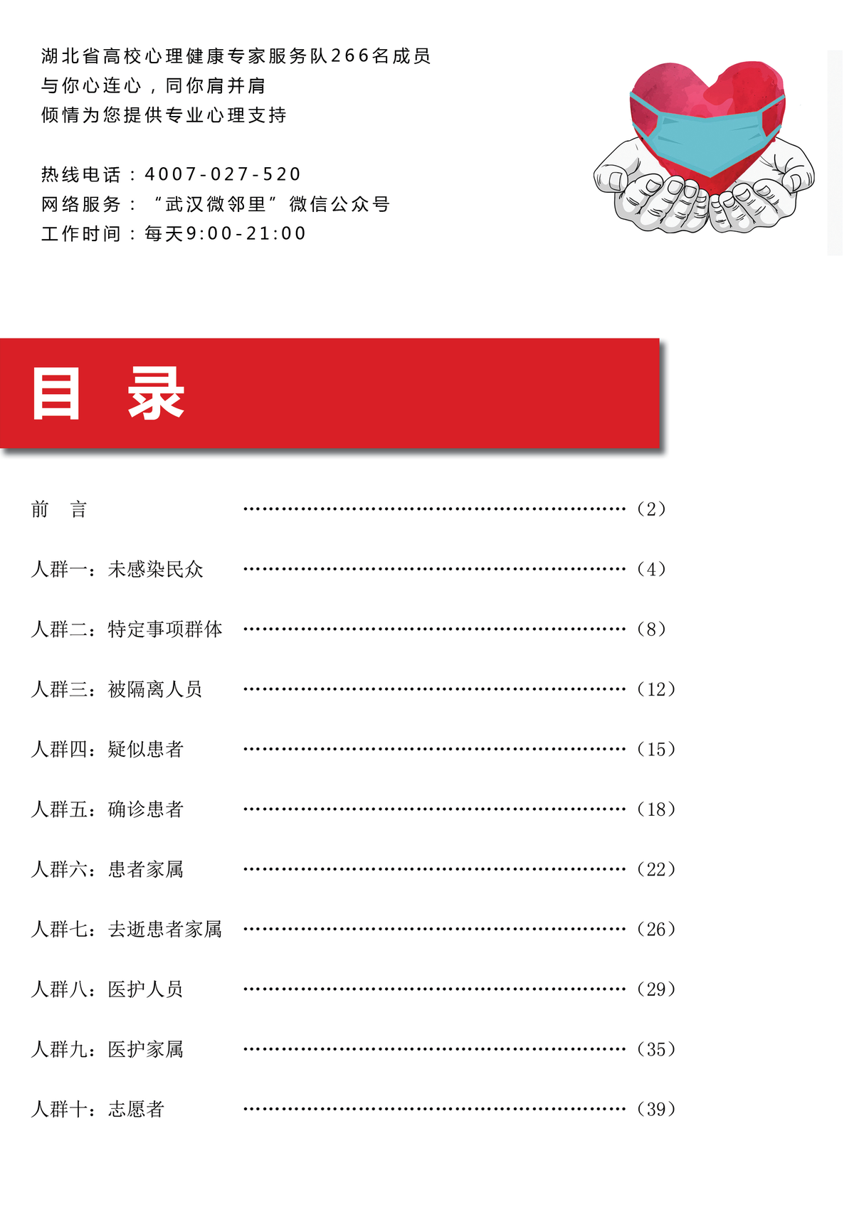 服务队根据咨询情况,总结了各个群体的心理需求特征,归纳了典型的求助问题,编制了该手册,以期为大众心理自我调节提供参考。