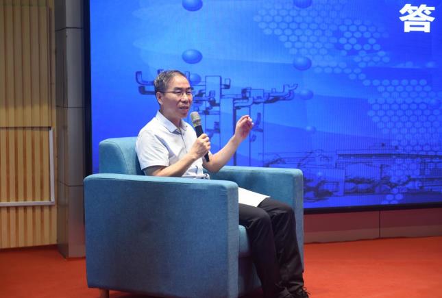 “答疑解惑”环节,四大学科群学生代表围绕科研学习、论文发表、学科交叉融合等方面提出问题,武汉纺织大学校长徐卫林院士结合自己的求学成长经历,面对面一一解答。