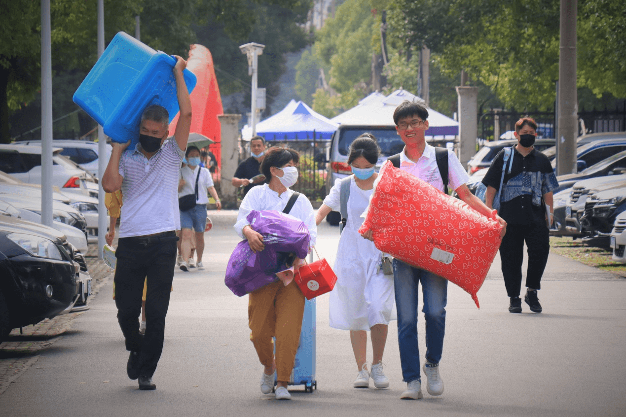 管理学院一家来自河南新乡的2021级新生于祥飞和他父母一起来报道现场。在报到前,于祥飞和他父母一起亲自采购了8万只口罩送给学院。自己家乡今年暴雨受灾得到全国人民的帮助,也想用自己的能力帮助到其他人。迎新现场,每位来自管理学院的新生都得到了于祥飞一家赠送的口罩。