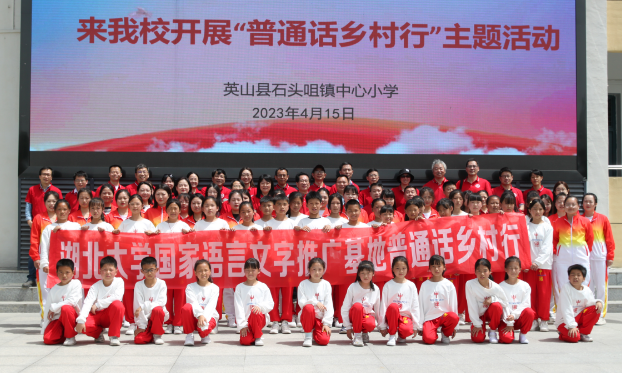 为加大乡村地区国家通用语言文字的推广力度,发挥普通话在乡村振兴建设中的积极作用,4月15日上午,国家语言文字推广基地(湖北大学)普通话乡村行活动走进黄冈市英山县,湖大文学院与英山县石镇中心小学共建“经典诵读推广服务基地”正式揭牌。据悉,该基地将开展诵读展示、专家语言课程等活动。