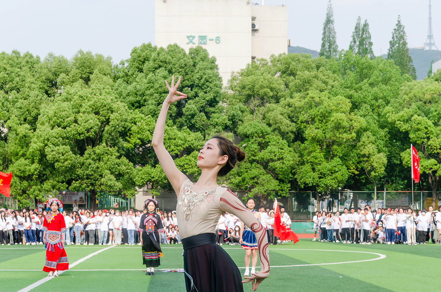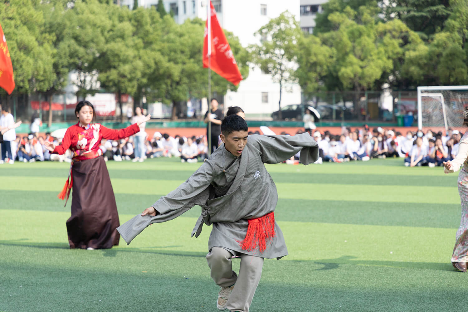 紧接着一支欢快喜庆的藏族《锅庄舞》开启了具有民族特色的精彩演出环节。在民族特色展示中,同学们带来了热情奔放、独具风情的民族舞蹈,节目表演通过情景化展演、沉浸式体验为师生带来耳目一新的观赏体验。华丽的服饰,动人的歌声,美妙的舞蹈,吸引了现场观众,掌声不断、好评如潮。