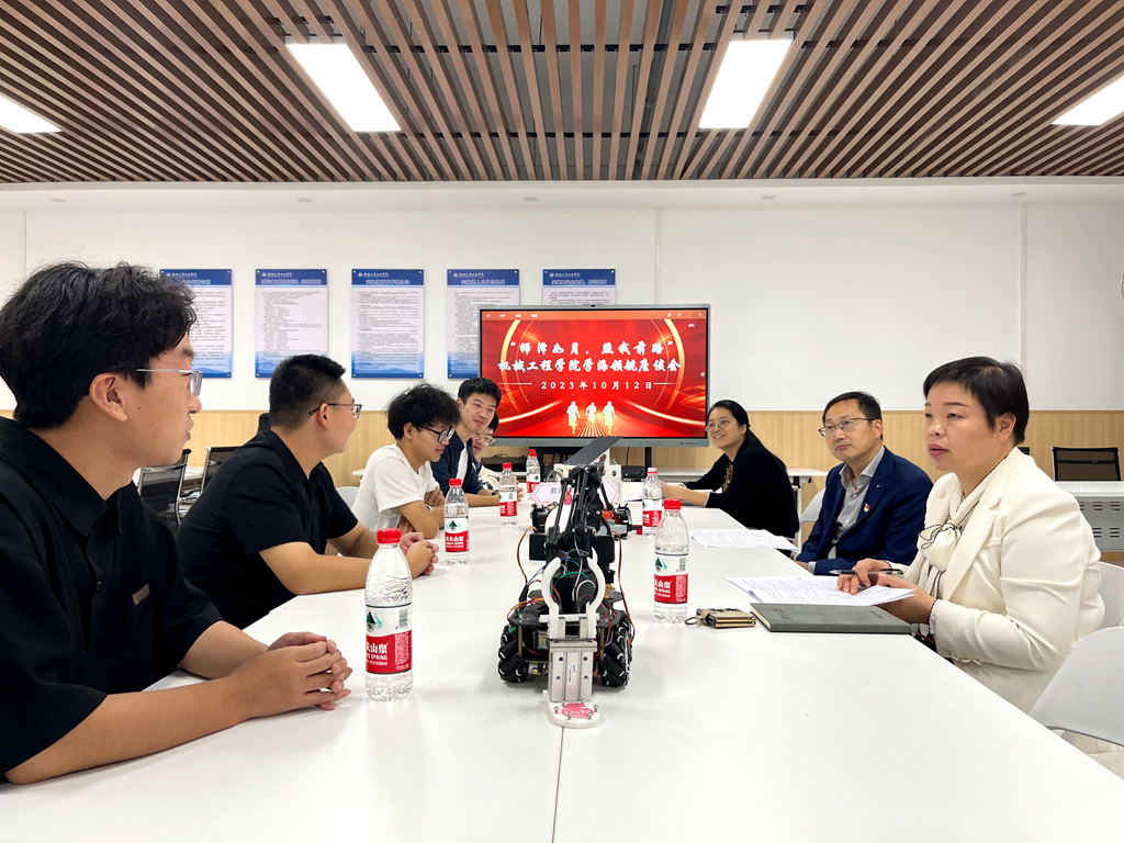 活动现场讨论热烈,并不时迸发出赞叹声,这是10月12日下午湖北汽车工业学院校党委副书记李涛走进产教大楼203机械学院先锋社团工作室,与学生面对面交流指导的画面。