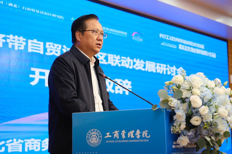 11月24日,由湖北省商务厅、中南财经政法大学、21世纪经济研究院指导,中南财经政法大学工商管理学院主办,中国(湖北)自由贸易试验区研究院、中国(江苏)自由贸易试验区研究院、21世纪经济研究院华中分院承办的长江经济带自贸试验区联动发展研讨会在中南财经政法大学举行。来自长江经济带沿江省市商务厅相关领导和自贸片区管理团队、长江经济带沿江省市自贸研究智库机构负责人以及南开大学、复旦大学、浙江大学等高校和研究机构的近百名知名专家学者齐聚江城武汉晓南湖畔,共商长江经济带自贸区联动发展大计,共议长江经济带高质量发展路径。另有国务院发展研究中心、中国国际经济交流中心、中山大学和对外经济贸易大学等单位的专家学者线上参加会议。