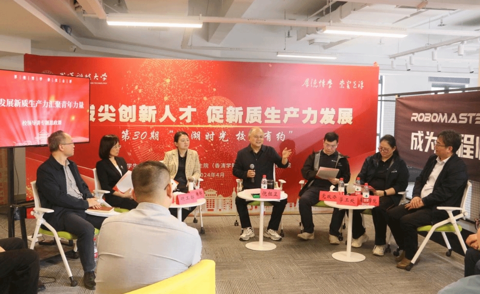 4月15日,“育拔尖创新人才促新质生产力发展”——第30期“沁湖时光校长有约”活动在武汉科技大学黄家湖校区教十一楼A区创新创业大楼“机甲大师”训练基地举行。校长倪红卫与香涛学院学生代表和15位“崇实战队”队员共聚一堂畅聊创新与新质生产力,话新青年使命与担当。党委学生工作部部长潘丽莎主持。