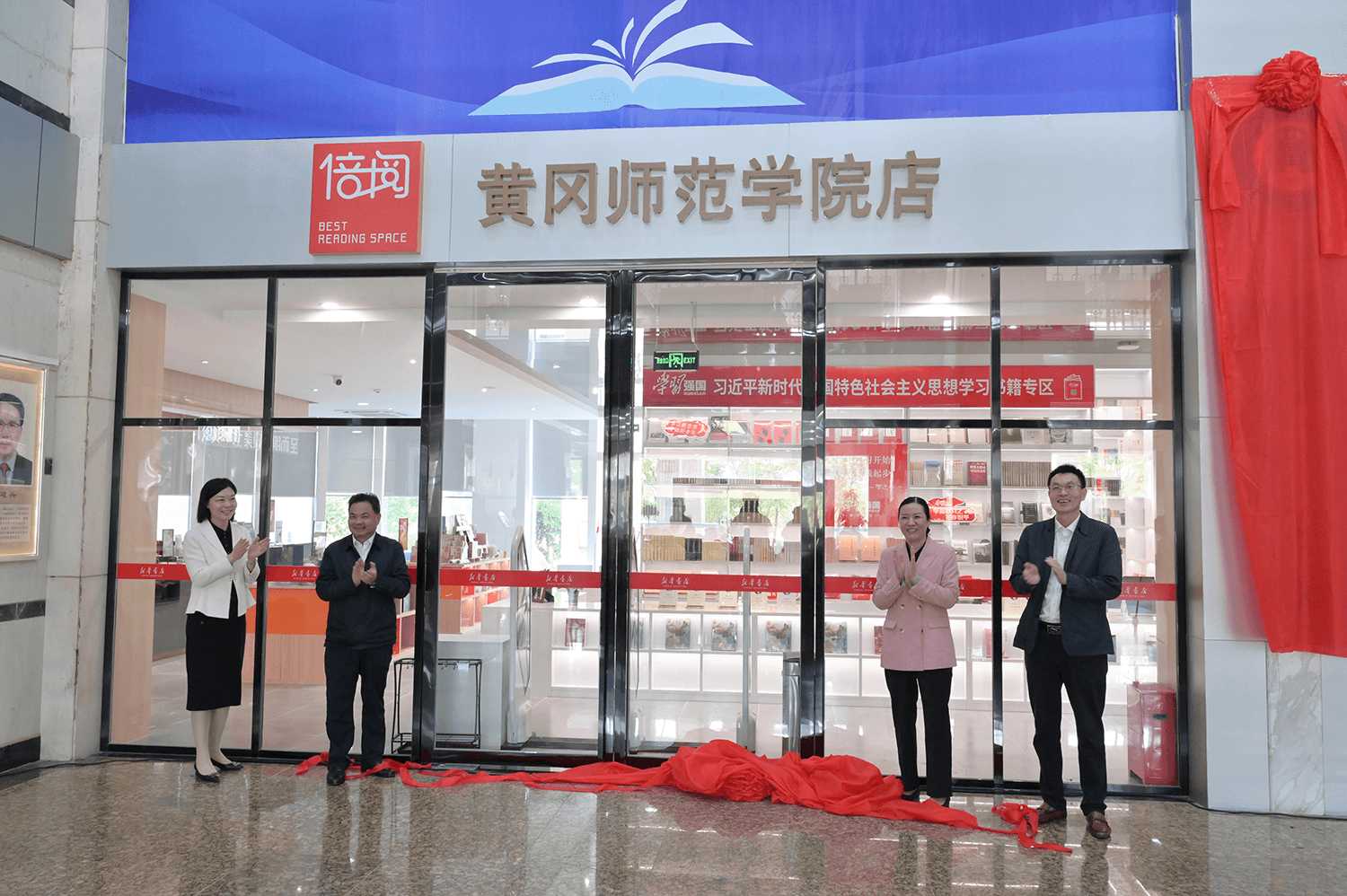 陈向军、陈李虹、周怡、姜华强为倍阅·黄冈师范学院店揭牌。
