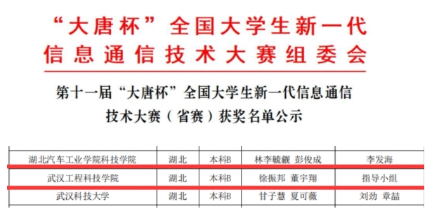 武汉工程科技学院学子在“大唐杯”全国大学生新一代信息通信技术大赛中获省赛一等奖