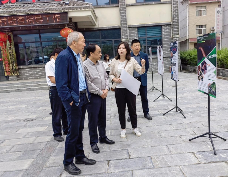 在阳日镇党委副书记齐辰辰、阳日村党总支书记邓世军、湖北建院驻村工作队队长曾昭海的陪同下,程超胜一行参观了第一批2023级数字媒体艺术设计专业学生写生作品展。阳日村的古建筑“刘家大院”、风景优美的“南河公园”、古韵新姿的“江西会馆”“薄磨街”以及原生态的自然景观美轮美奂地呈现在展板上。