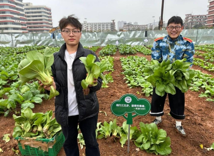 “菜种得水灵,卖菜的流程也处理得井井有条。”老师们夸赞道。而今对于同学们而言,在学习之余,相约一起去湖畔“心”田里浇一浇水,锄一锄草,早已是他们疏解压力、维持良好心理状态的新途径。在绿色生机的包裹下,同学们通过种植、售卖,在集体协作中增强沟通能力和团队协作精神,并在可视化的劳动技能成果中获得自我价值肯定,也在劳动中砥砺顽强意志。