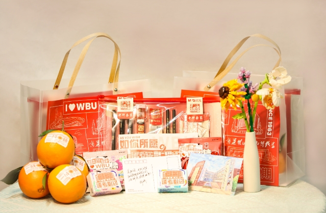 礼包里有一整套考试用品,包括考试专用签字笔、2B铅笔、橡皮、尺子等,还贴心地装了糖果、纸巾和脐橙,糖果、纸巾寓意甜蜜如愿、备战无忧,橙子被贴上“一战成硕”的美好祝福。礼包最特别之处,还在于其中的一张明信片——校长彭瑜亲笔写下的鼓励寄语:“道阻且长,行则将至。不负‘研’途,终得‘硕’果。”字里行间透露出的深切关怀,让许多同学感动不已。“这是我收到的最有意义的礼物!”拿到礼包的商务英语专业的赵颖慧说。