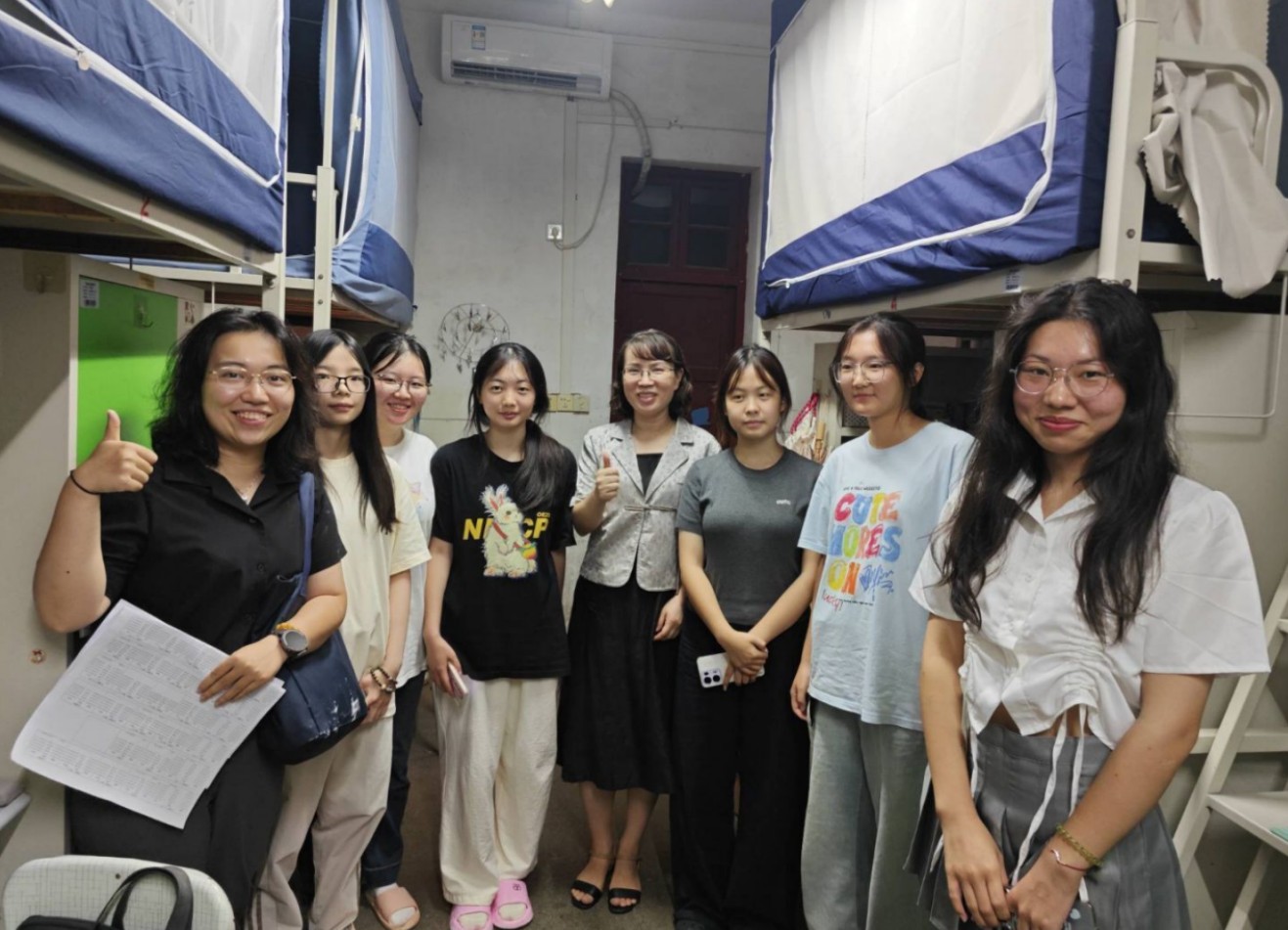 13日19:00,学院领导班子率领辅导员、新生班主任分六组深入新生寝室。“晚上睡着冷不冷?”“食堂吃得惯吗?”“家里是哪里的?”一句句拉家常,把“查隐患+解困惑+鼓干劲”融进10分钟“微走访”,现场解决学业、生活疑问60余条。学院党委书记副书记表示:“学生工作没有‘8小时之外’,我们把办公室搬到寝室,就是把关怀做到心坎。”