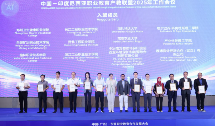 会上,行业专家与院校代表重点围绕AI赋能职业教育发展的创新路径展开深入交流。中国—印度尼西亚职业教育产教联盟组织9个中印尼产教融合办学项目合作签约,并发布了印尼职业教育标准升级项目成果。长江工程职业技术学院作为联盟新入会成员上台接受授牌,陈欣代表学校与中冶南方都市环保印尼公司和印尼巴淡国立理工学院深入沟通交流,并开展电子签约。