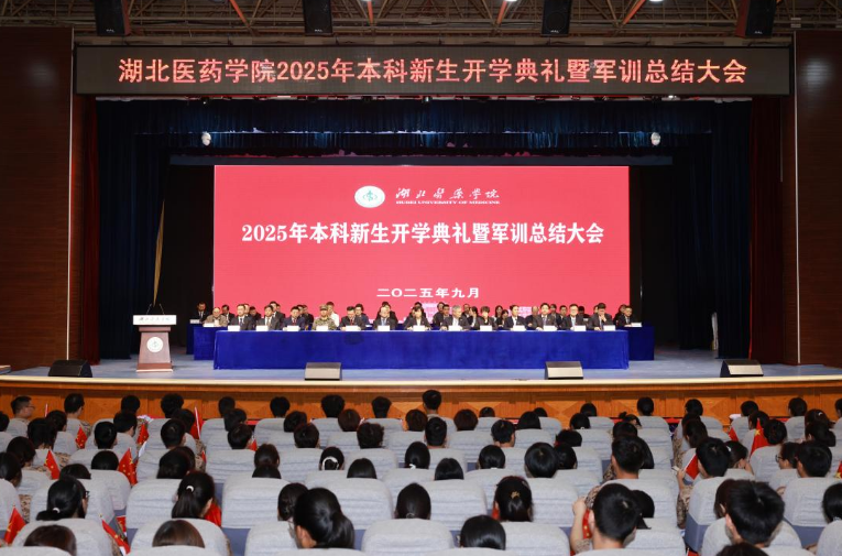 金秋送爽,杏林迎新。9月21日上午,湖北医药学院2025级本科新生开学典礼暨军训总结大会在该校学子会馆三楼举行。来自五湖四海的三千余名新生,怀揣滚烫的梦想和青春的热忱,在湖北医药学院开启医学新征程。典礼由党委常委、副校长、统战部部长谭艳主持。