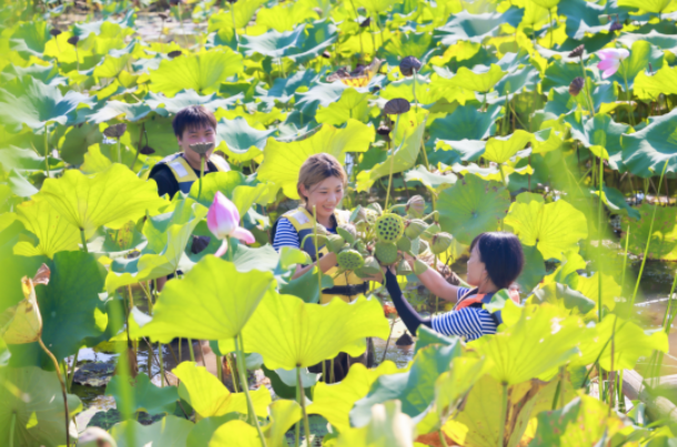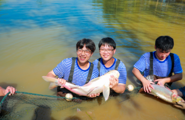 餐前,新生代表们在工作人员指导下体验捕鱼、采莲,鲜鱼、莲实以及学校提供的自产有机农产品由专业厨师处理好后分配到各学院灶台,成为迎新宴的主打食材。