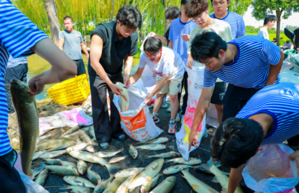 活动前夕,学校特别组织新生代表走进长河基地,开展“捕鱼摘莲”劳动实践。机械与电子工程学院2025级机电设备技术专业学生陈坤,挽起裤脚与同学合力拉网,看着活蹦乱跳的鲜鱼跃出水面,难掩兴奋:“从小在鱼米之乡长大,却第一次体验集体捕鱼!团队协作的力量、军训外的校园乐趣,都让我对大学生活充满期待。”