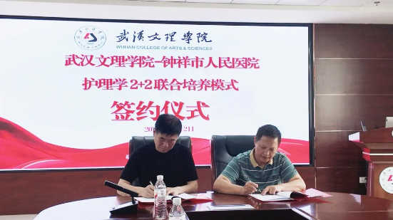 近日,武汉文理学院与钟祥市人民医院正式签署护理学“2+2”联合培养模式合作协议。武汉文理学院副校长杨灼芳、医学院院长艾永循,钟祥市人民医院党委委员、副院长张光宇等人出席签约仪式。
