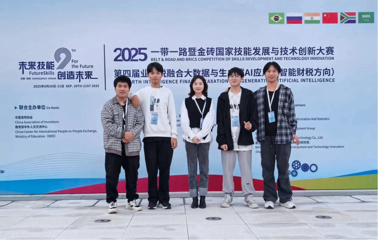 9月20日,2025一带一路暨金砖国家技能发展与技术创新大赛第四届业财税融合大数据与生成式AI应用(智能财税方向)赛项决赛在河南信息统计职业学院举行。来自武汉船舶职业技术学院经济与管理学院的学生参赛团队获得高职学生组一等奖,汪安澜、彭婉莹2位指导老师获得优秀指导教师称号,学校获最佳组织奖。