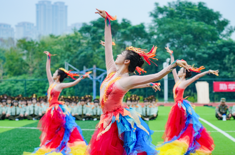 绿茵场地化作青春舞台,大学开学典礼秒变“春晚现场”。9月22日上午,在武汉工商学院2025级新生开学典礼暨军训成果汇报大会上,14名学子化身金色凤凰,完美复刻央视春晚爆火节目《星汉耀江城》中的“凤凰舞”,为全场师生带来了一场惊艳的视觉盛宴。