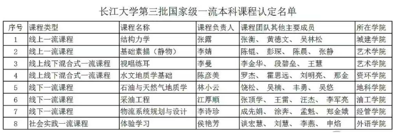 近日,教育部公示第三批国家级一流本科课程名单,长江大学8门课程成功入选。截至目前,长江大学共获批18门国家级一流本科课程、112门省级一流本科课程。