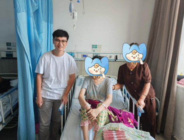 8月19日,辅导员马超来到安徽省阜阳市,在病房内进行了一场特殊的家访活动。2023级本科生小Q同学今年8月在做胆结石、胰腺占位性病变手术后突发多脏器衰竭,曾一度在ICU昏迷,后转入普通病房休养,学院得知情况后第一时间组织全院师生进行爱心募捐,最终募得善款50473.2元。