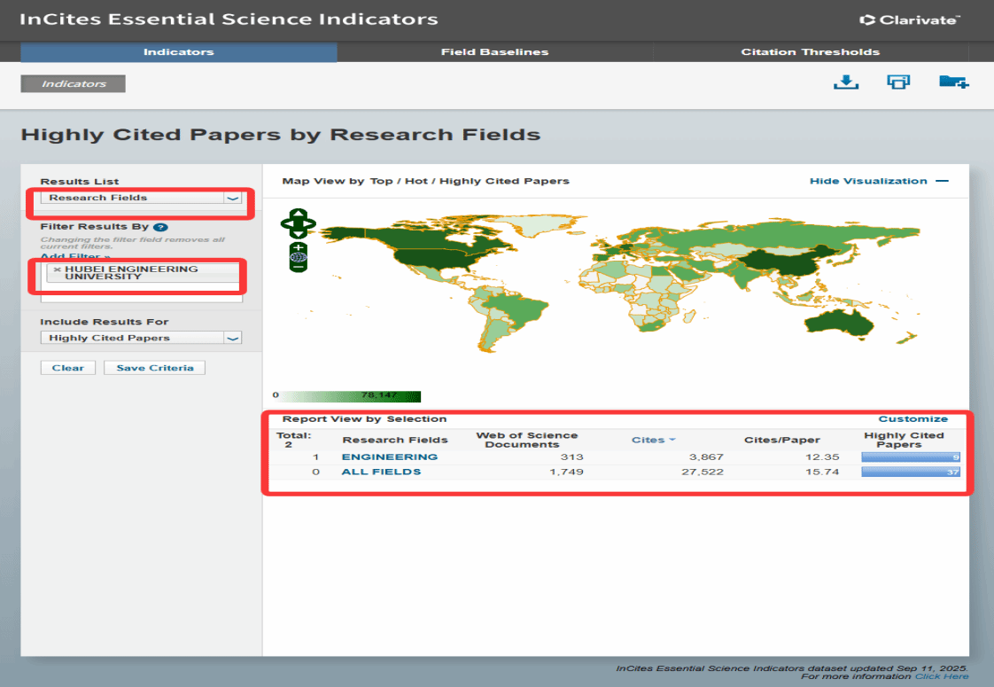 9月11日,据国际知名数据分析机构科睿唯安(Clarivate)公布的最新一期基本科学指标数据库(Essential Science Indicators,简称ESI)统计数据显示,湖北工程学院“工程学”获得突破,首次进入ESI全球排名前1%,这标志着湖北工程学院“工程学”学科领域成功迈入国际高水平学科行列。