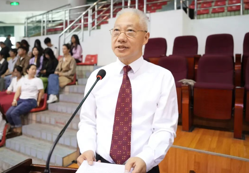 在开学典礼环节,校长王恕立代表学校董事会、校党委、校行政及全校师生员工,对2025级新生表示热烈欢迎和诚挚祝贺,向全体军训教官致以衷心感谢。他介绍了学校的发展历程和办学成果,并对新生提出三点期望: