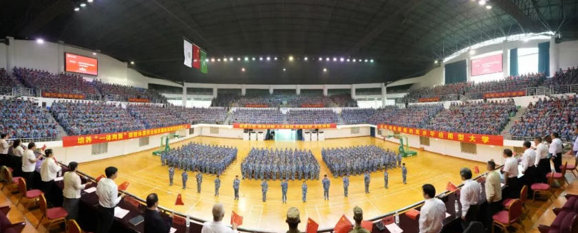 全体师生齐声合唱《歌唱祖国》,激昂的歌声回荡在校园上空,为本次新生开学典礼暨军训总结汇报大会画上圆满句号。(通讯员:李骞)