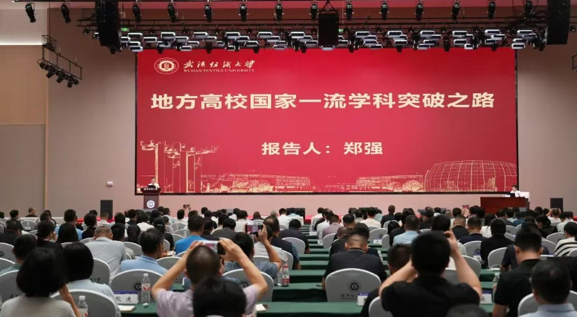 近日,知名学者、浙江大学教授、太原理工大学原党委书记郑强教授应邀来武汉纺织大学,以“地方高校‘国家一流学科’突破之路”为题,在建全会堂为全校600余名师生代表作了一场精彩的报告。报告会现场,郑强教授金句频出,现场气氛热烈,掌声不断。报告由校党委书记徐卫林院士主持。
