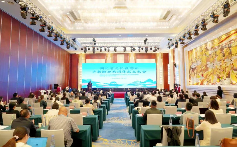 9月24日,湖北省文化旅游业产教融合共同体成立大会在武汉召开,湖北省文化和旅游厅党组成员、省文物事业发展中心党委书记、主任陈飞,湖北省教育厅职业教育与成人教育处副处长张灿,湖北文化旅游集团有限公司党委委员、副总经理周永彪,湖北大学党委常委、副校长李振,湖北艺术职业学院党委书记杨峻峰,党委副书记、院长陈伟等出席会议,来自相关文旅企业、高校、科研机构、行业协会的120多位代表参加会议。