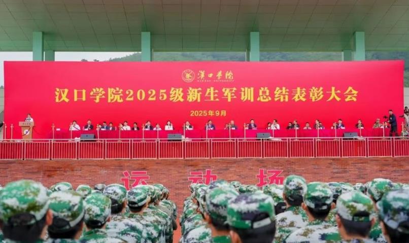 9月25日上午,汉口学院2025级新生军训总结表彰大会在京山教学改革基地运动场隆重举行。湖北省人民政府原副秘书长兼政策研究室主任刘良谋、湖北省人民政府办公厅二级巡视员周春强,京山市委市政府领导出席活动。学校董事长、校长罗爱平教授及全体校领导参加会议。大会由副校长王鹤主持。
